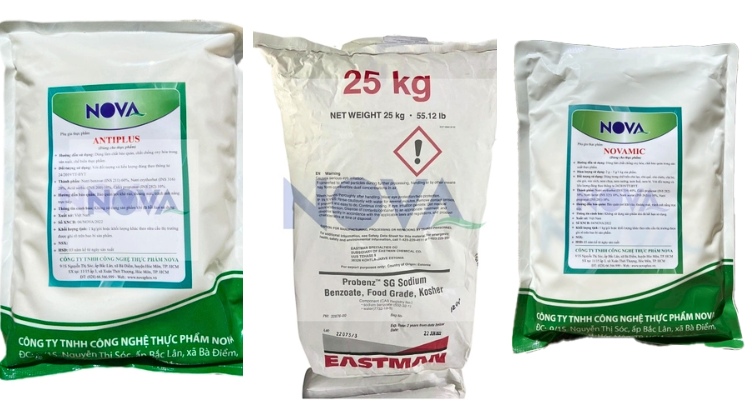4. Chất bảo quản: CHẤT BẢO QUẢN NOVAMIC, CHẤT BẢO QUẢN ANTIPLUS, SODIUM BENZOAT.