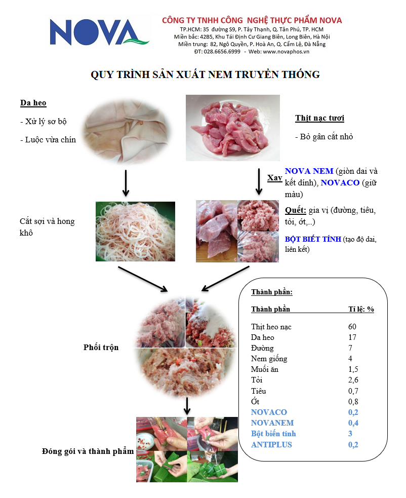 - NOVA NEM: tạo giòn dai, kết dính thịt da